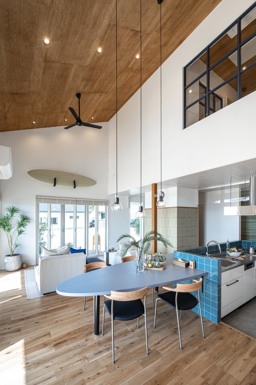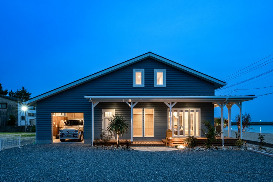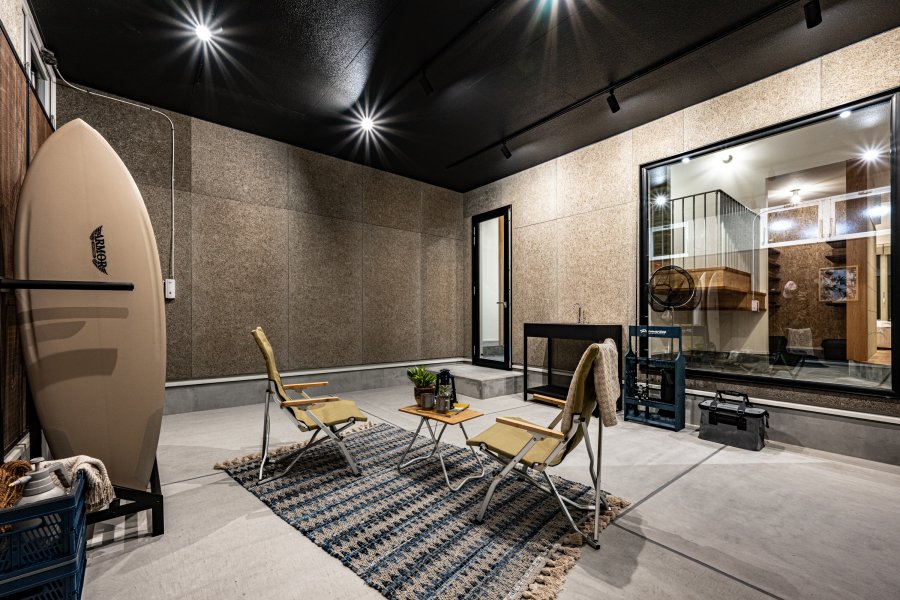 サーフィンやバイク、アウトドアを楽しめるガレージを備えた住まい。