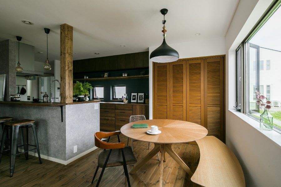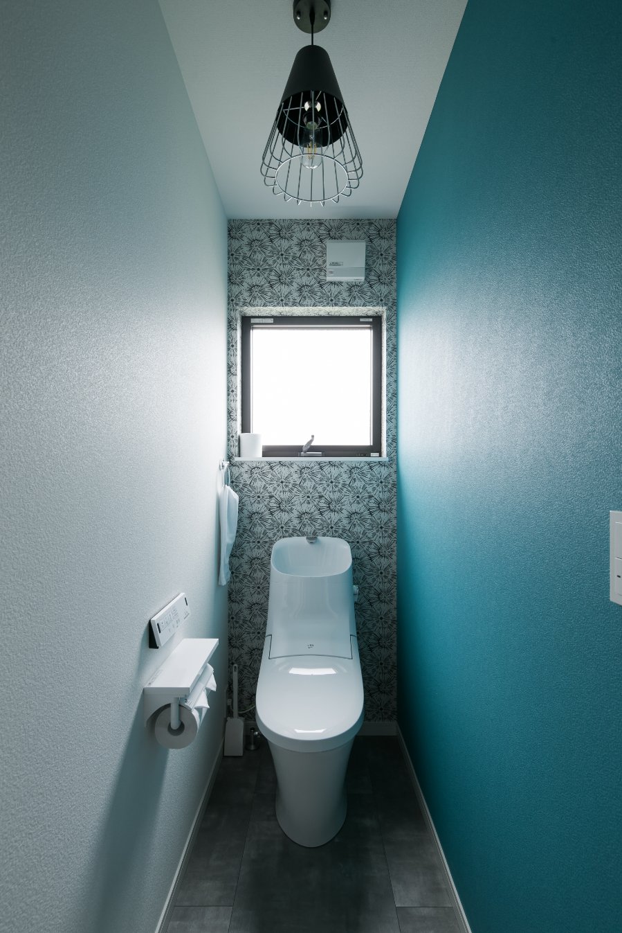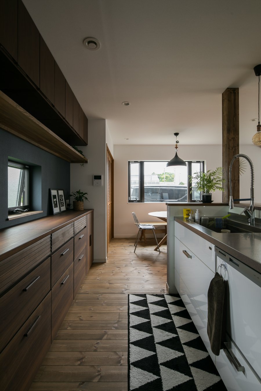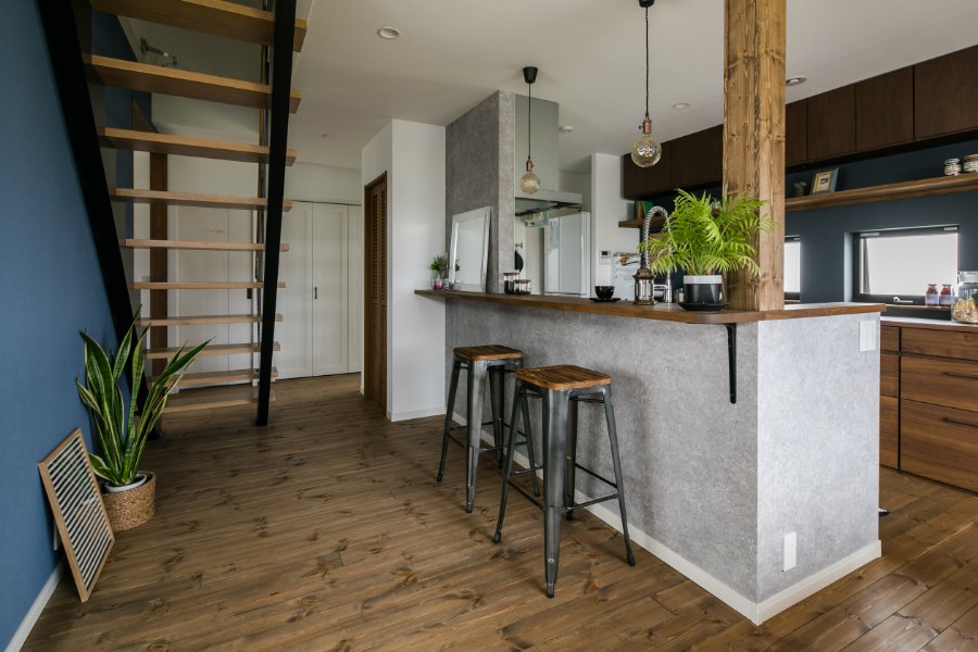 爽やかなブルーのタイルが素敵なキッチンのある家