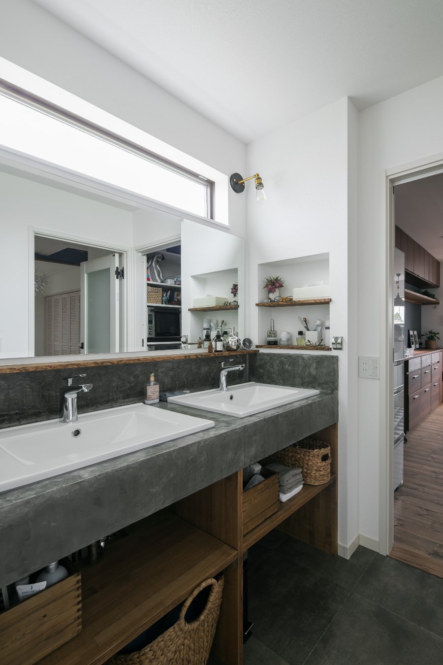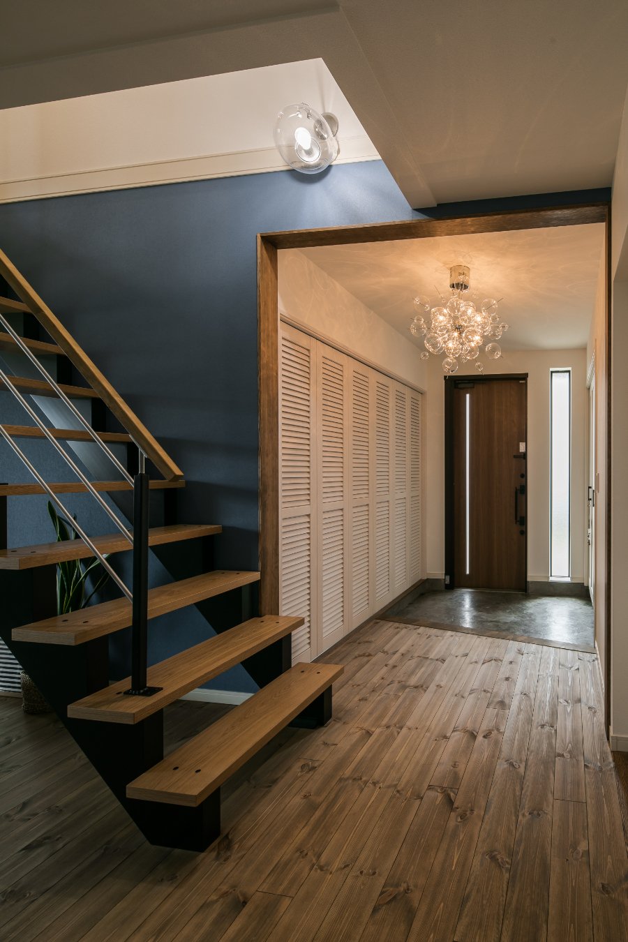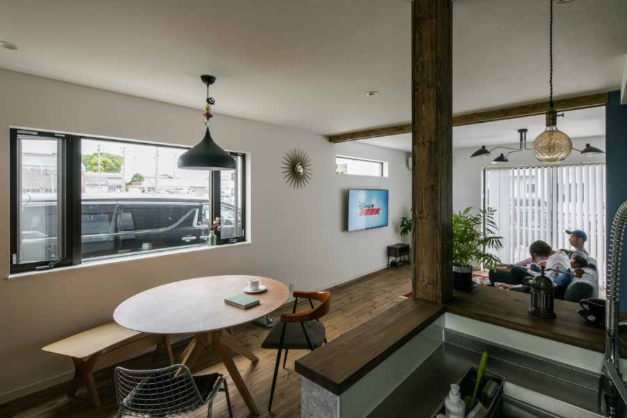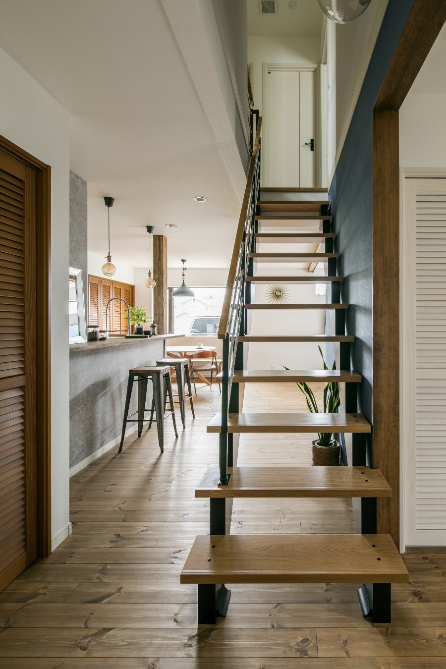爽やかなブルーのタイルが素敵なキッチンのある家