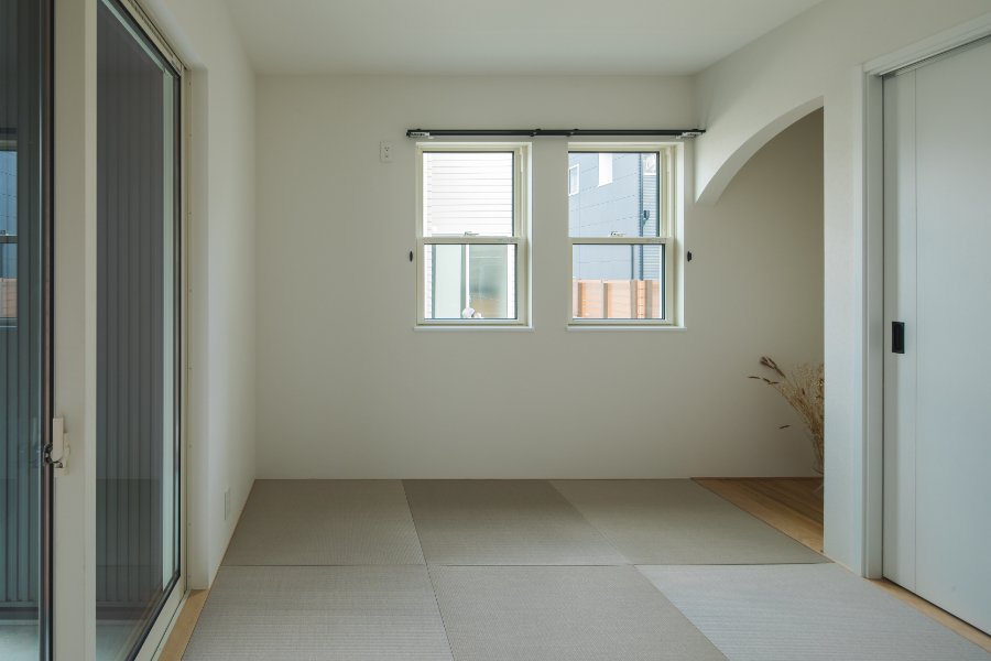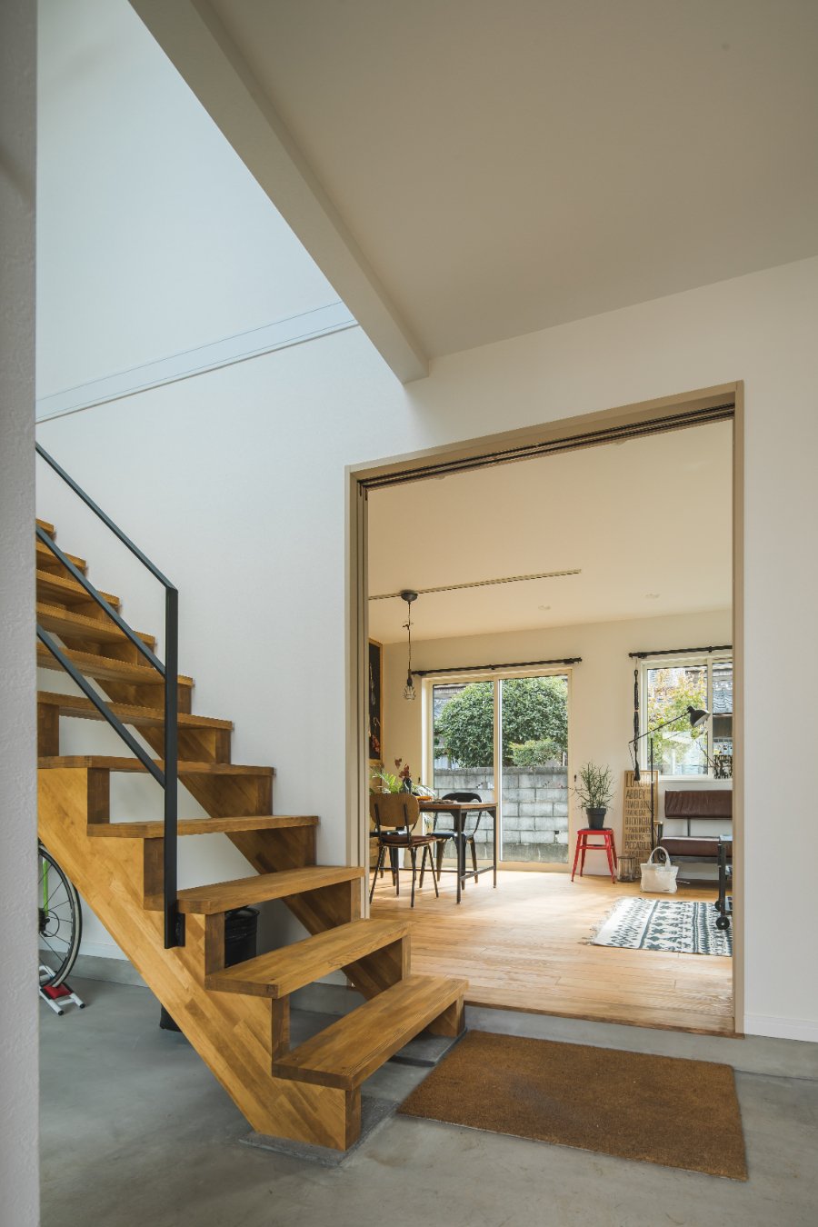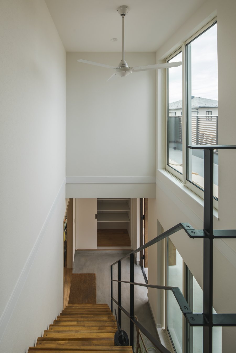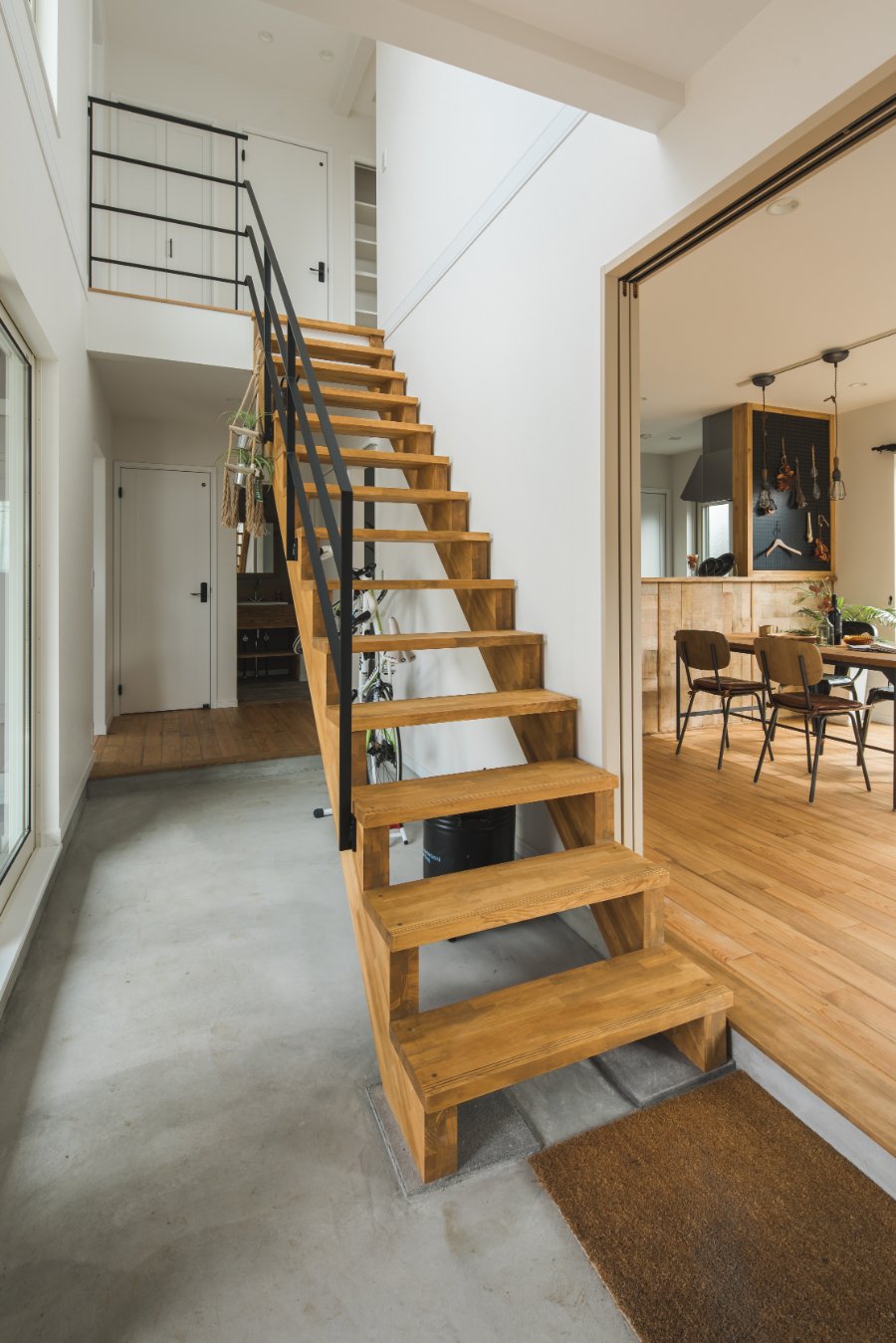 ポーチリビングがあるブルーのカリフォルニアスタイルの家