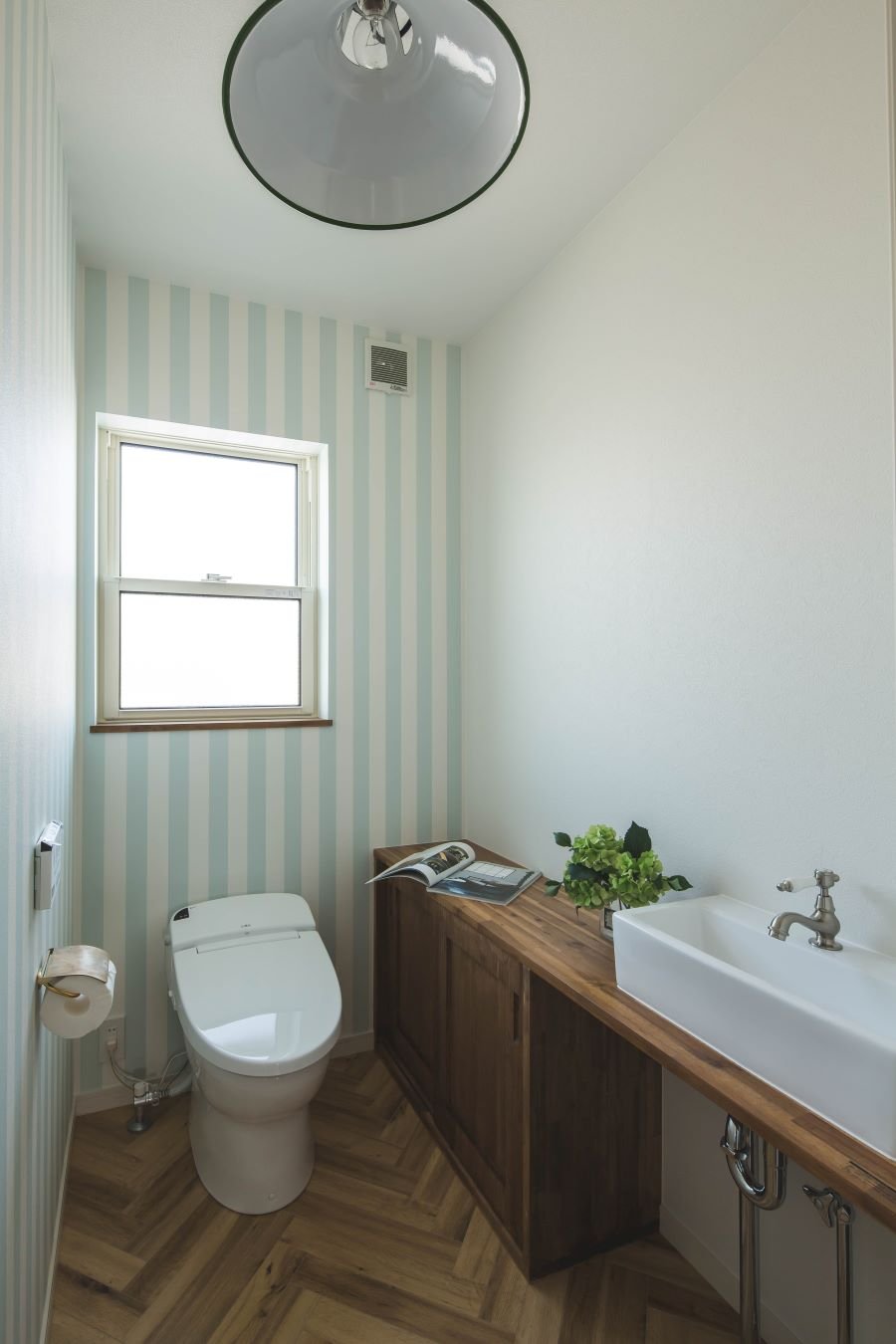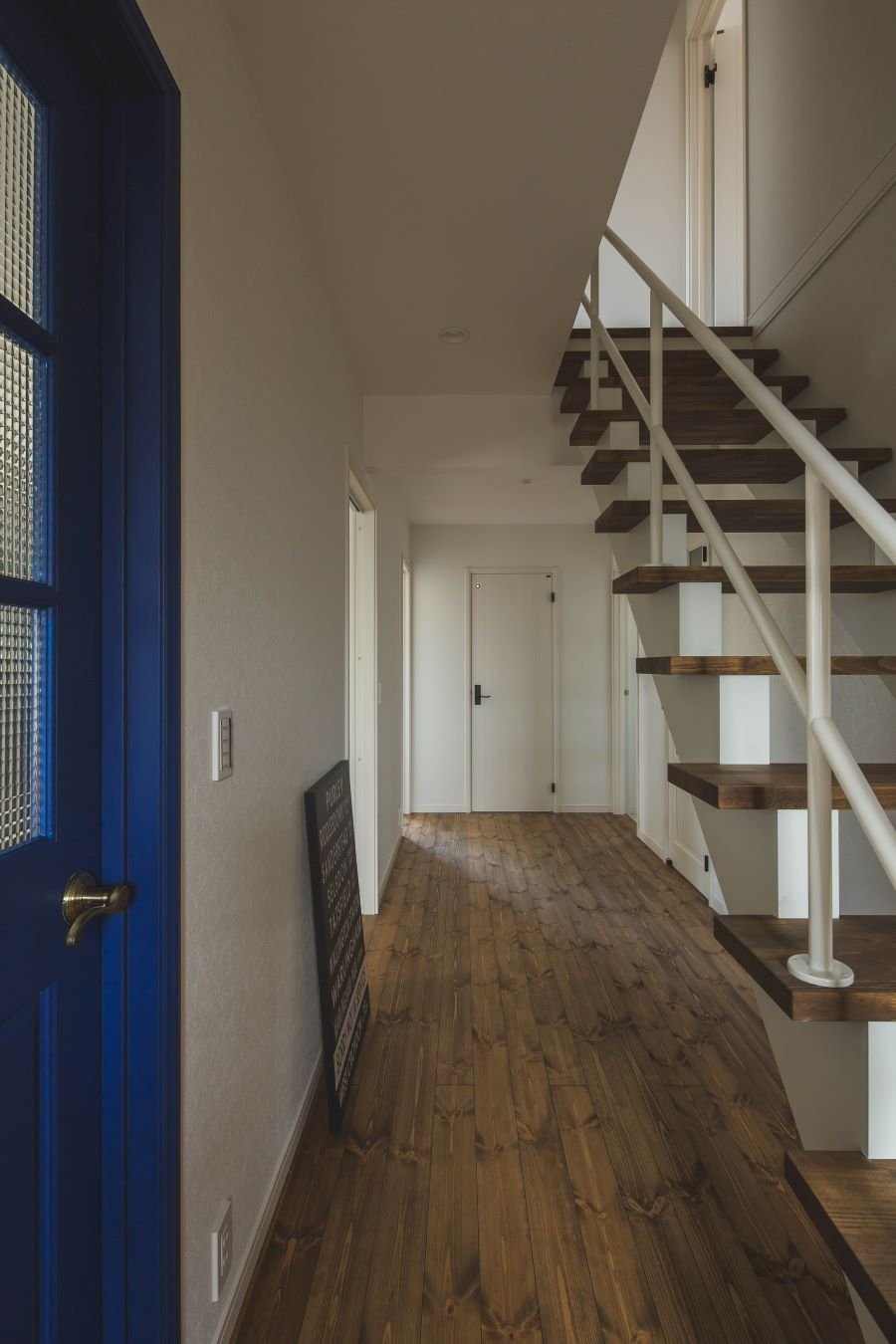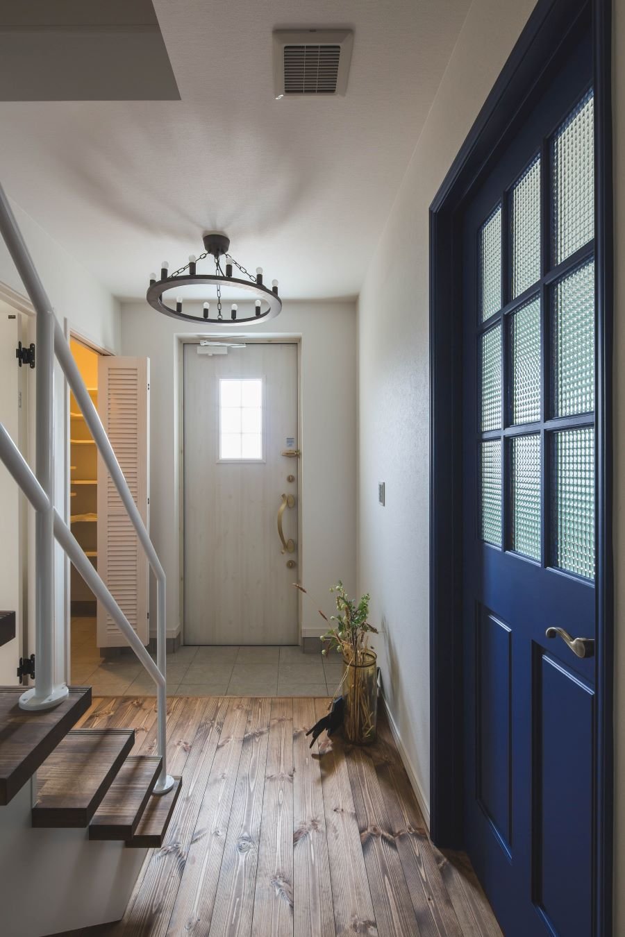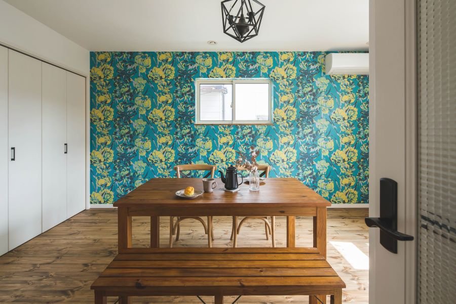 ヘリンボーンのアクセントウォールがあるカリフォルニアスタイルの家
