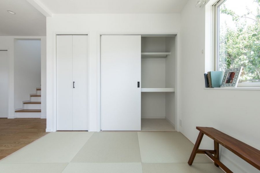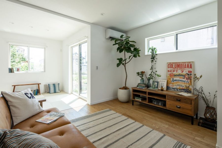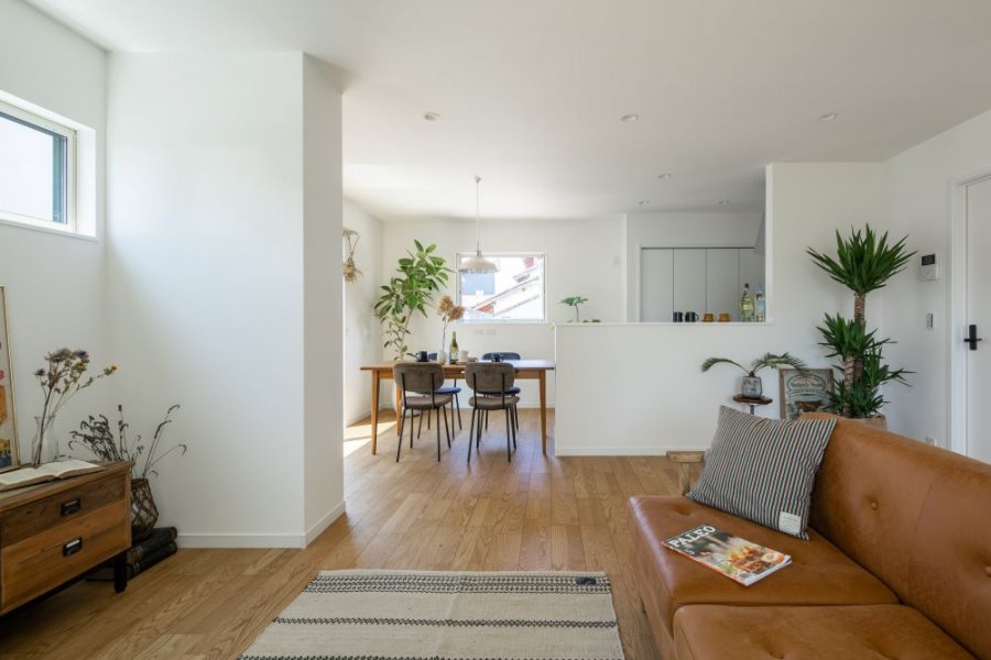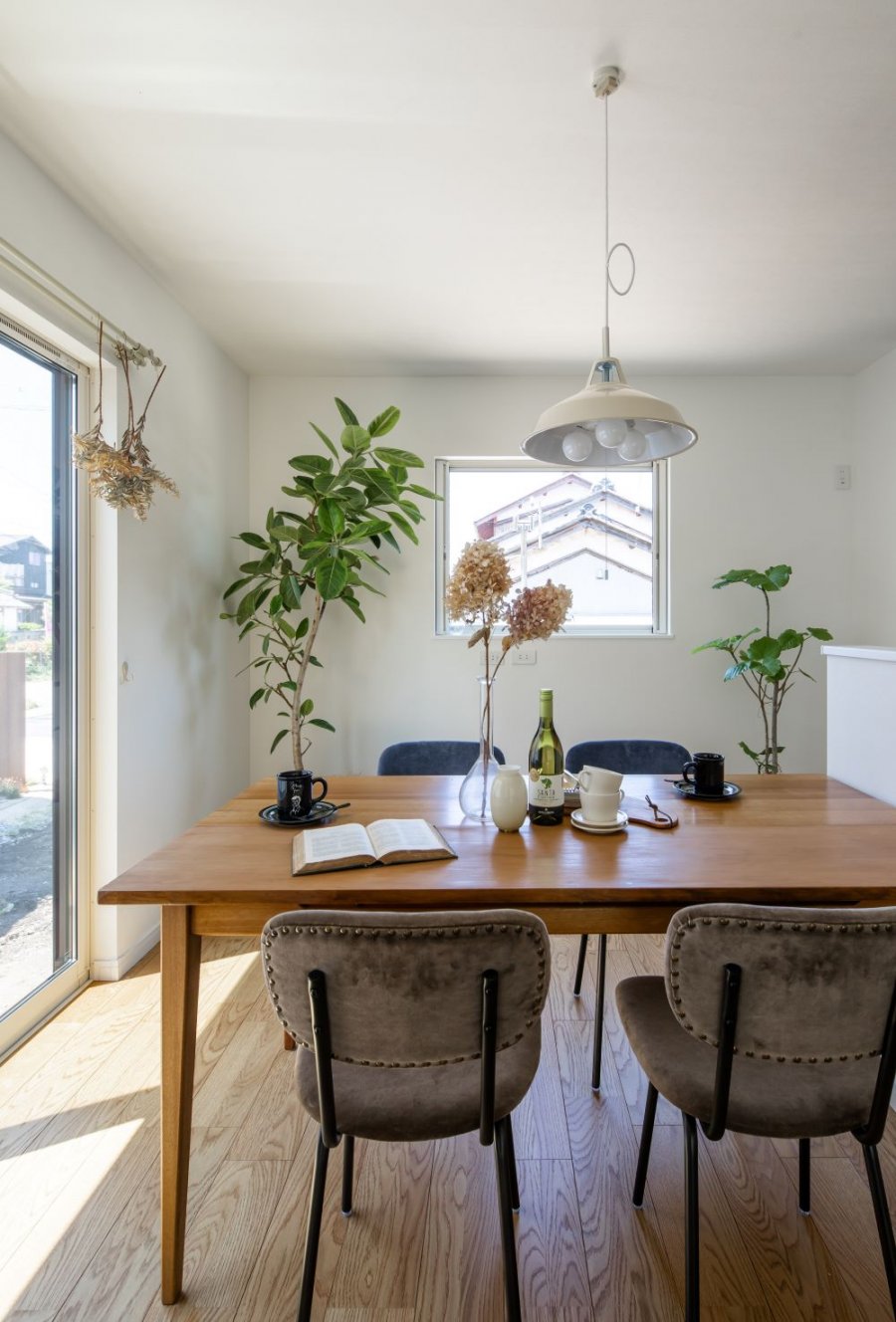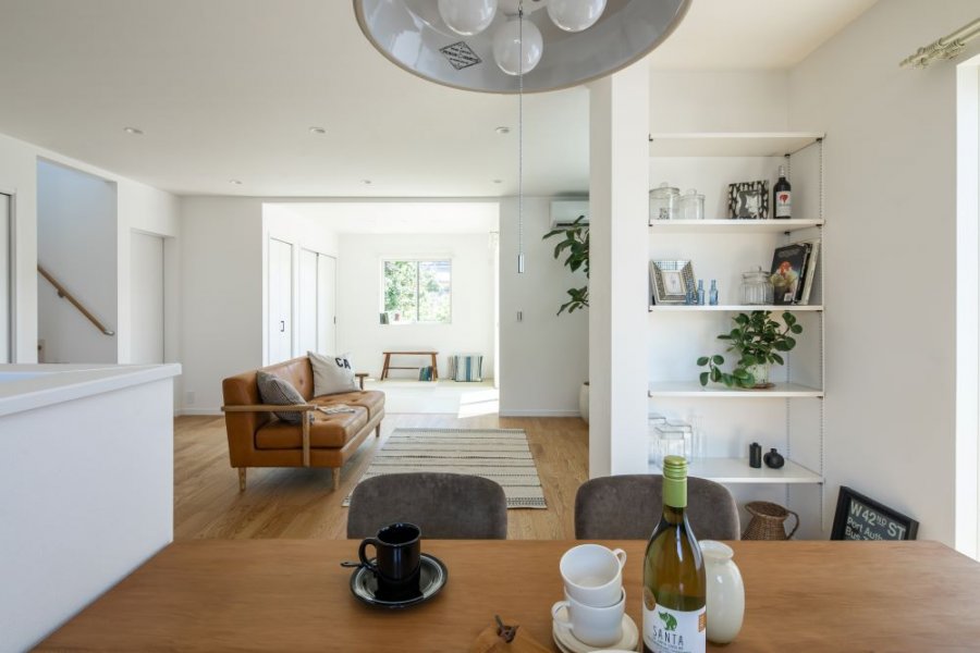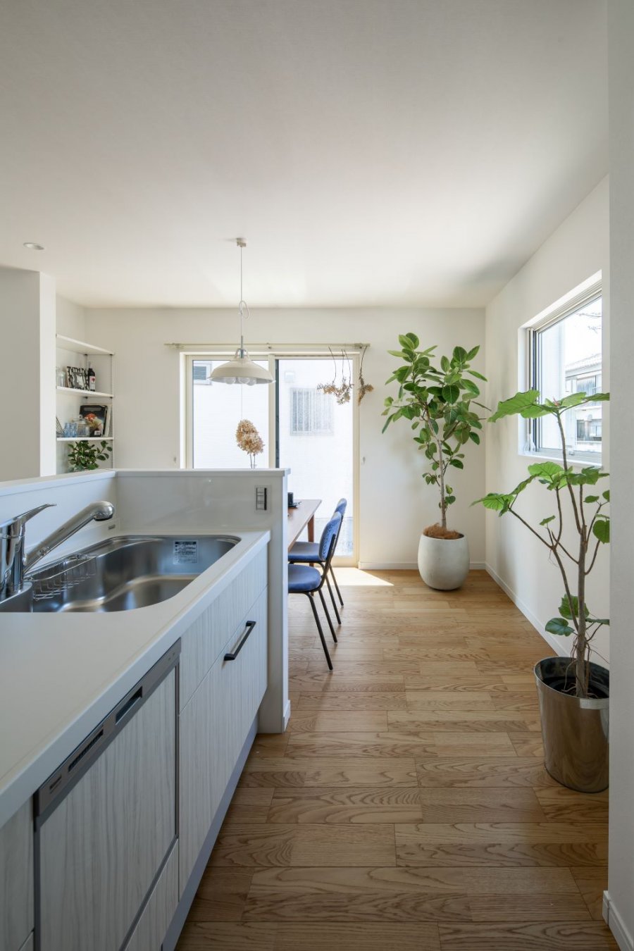 爽やかなブルーのタイルが素敵なキッチンのある家