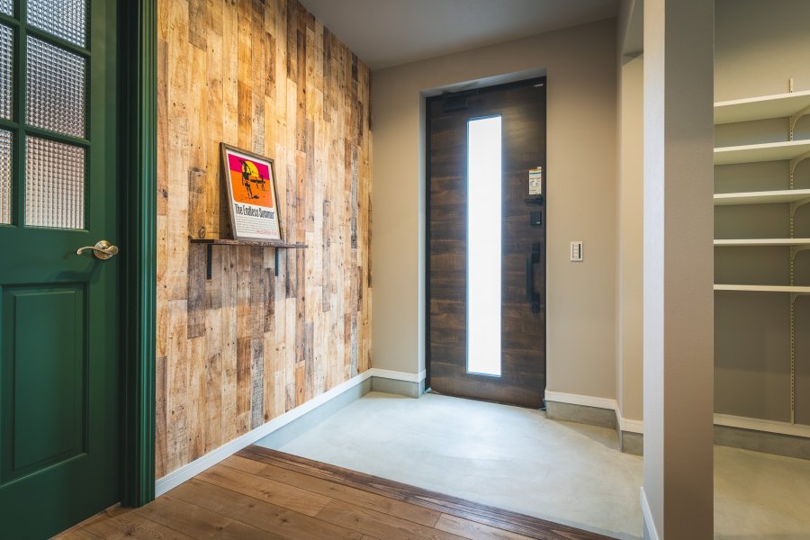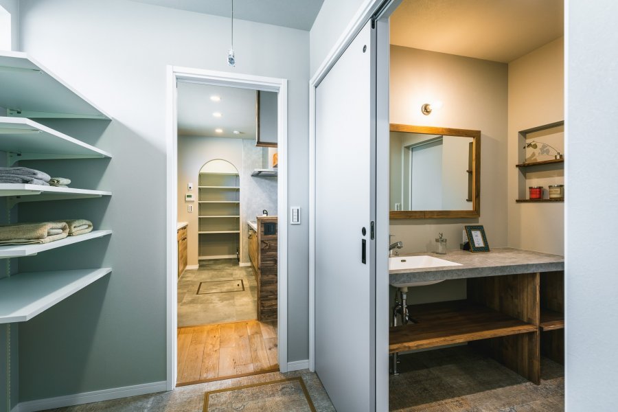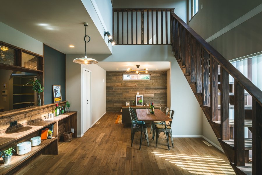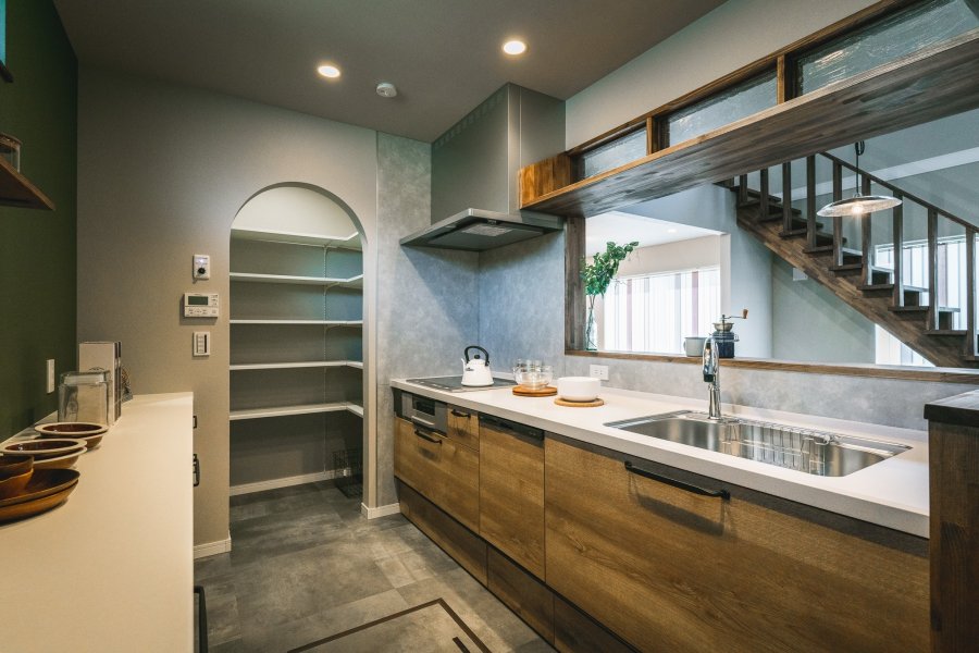 ヘリンボーン柄のキッチンのある家