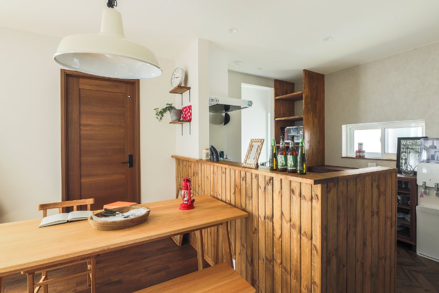 アイランドキッチンのあるナチュラルスタイルの家