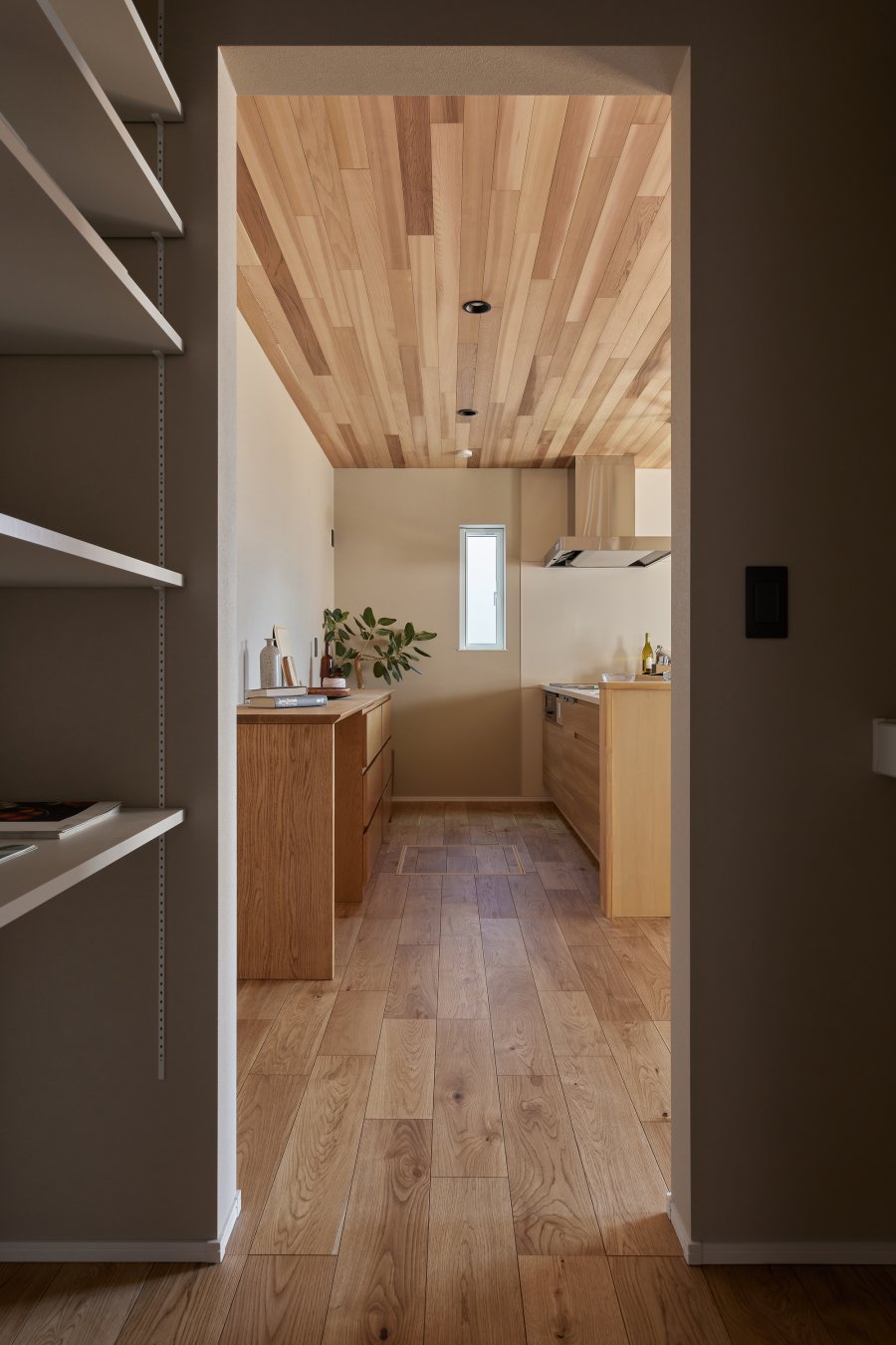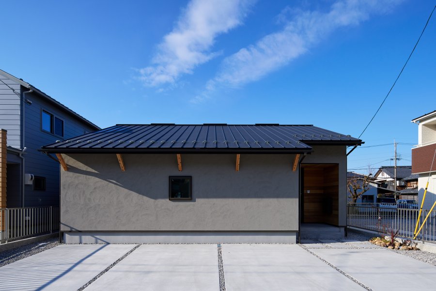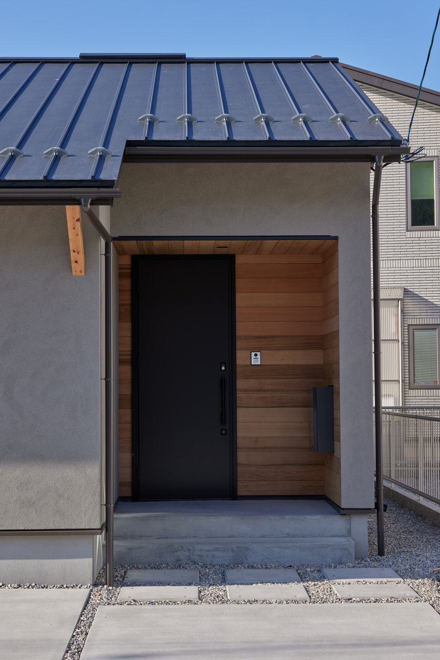 ヘリンボーンのアクセントウォールがあるカリフォルニアスタイルの家