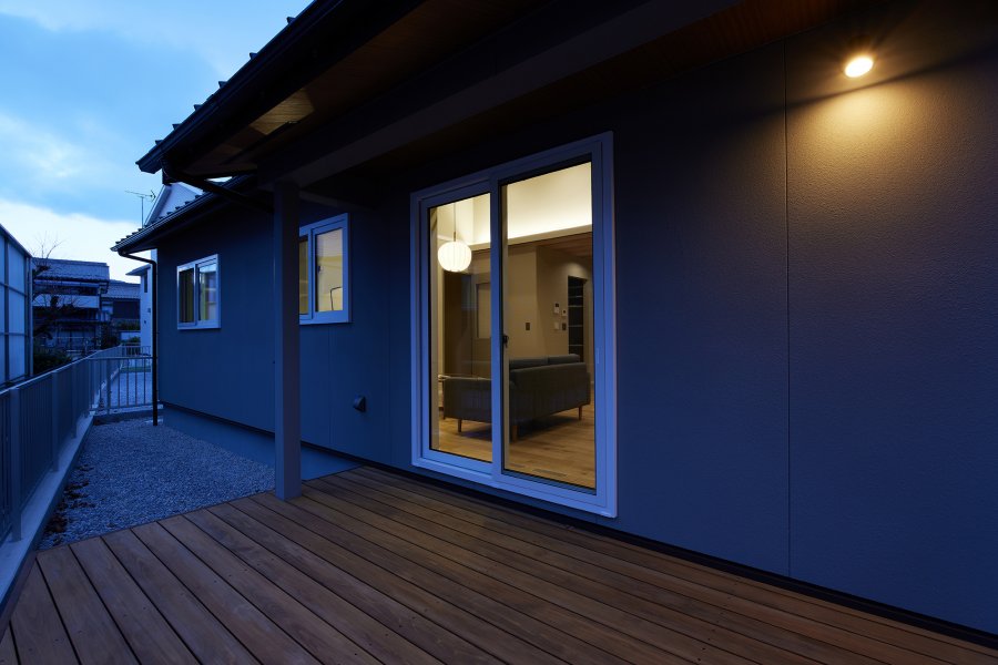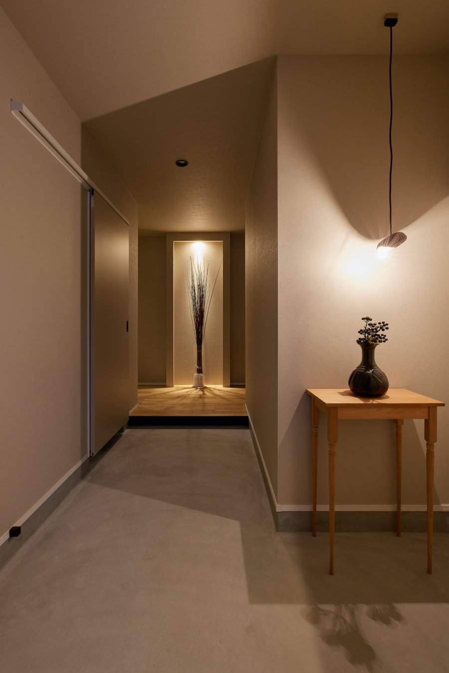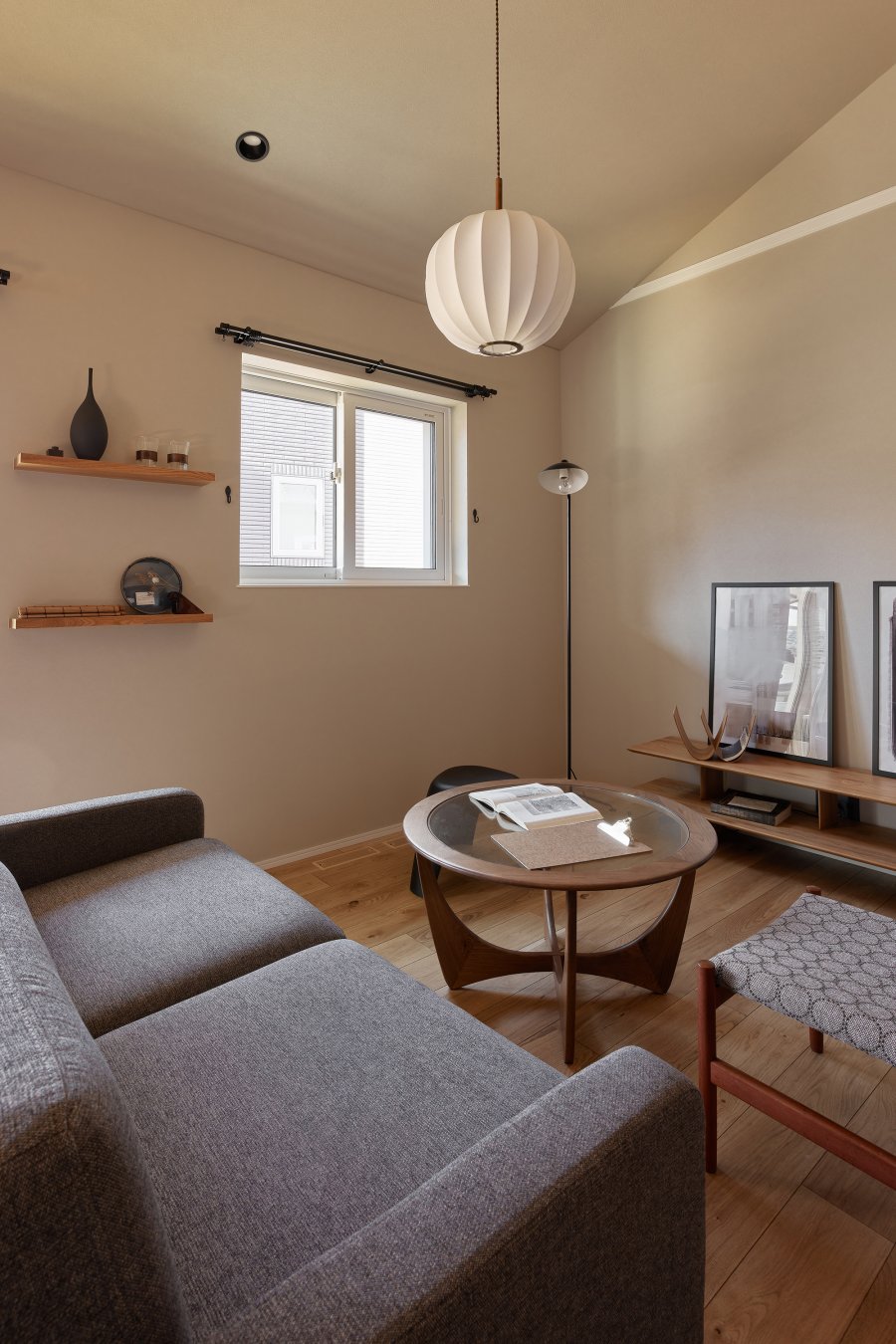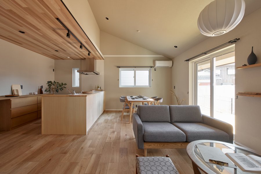 ヘリンボーンのアクセントウォールがあるカリフォルニアスタイルの家